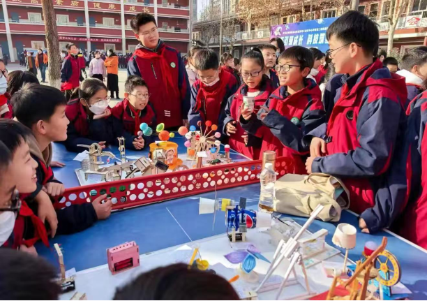 本届科技节于12月8日正式启幕,开幕式上精彩的实验秀与互动式游园会点燃了全校师生的科学热情。在12月8日至12月19日期间,各年级相继开展独具特色的科技节活动。其中,一年级"光影奇遇记"通过亲子协作探索光学奥秘;二年级纸飞机大赛承载着孩子们的蓝天梦想;三年级融合弹力小车比赛与趣味实验,寓教于乐;四年级科技知识竞赛展现智慧碰撞;五年级"奇思妙想"作品展呈现智能战车、环保机器人等创新成果;六年级"诗韵融科"实现人文与科技跨界融合;七年级"DNA探秘"讲座揭秘基因科学;八年级望远镜制作仰望星辰大海;九年级科学实验秀打造沉浸式科学体验。各项活动既体现了各学段特点,又共同构建了完整的科学探索体系。